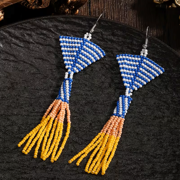 Boucles d'oreilles boho en perles style Ethnique Bohème différents modèles et pour divers occasions. Fait main. 10 cm de long et 3cm de large les petites et 15cm long et 4 cm de large pour les plus longues.